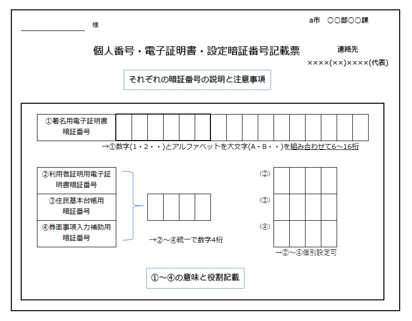 「個人番号カード・電子証明書・設定暗証番号記載票」には、